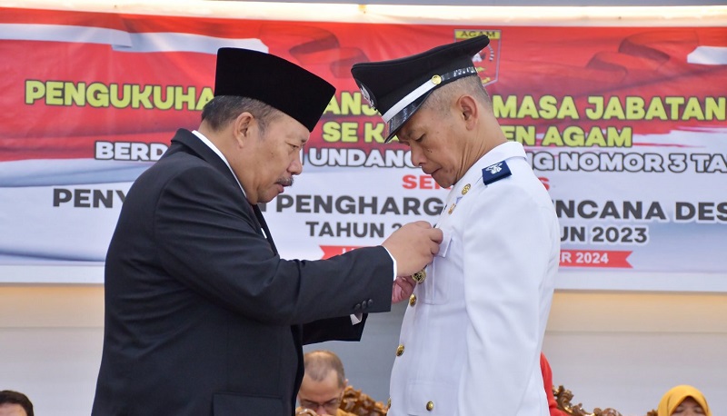 Penyerahan penghargaan itu bersamaan dengan pengukuhan perpanjangan masa jabatan wali nagari yang ada di Kabupaten Agam.