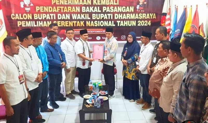KPU Dharmasraya akhirnya menerima pendaftaran Adi Gunawan-Romi Siska Putra, setelah sebelumnya pendaftarannya ditolak pada masa perpanjangan pendaftaran dari tanggal 2-4 September lalu.