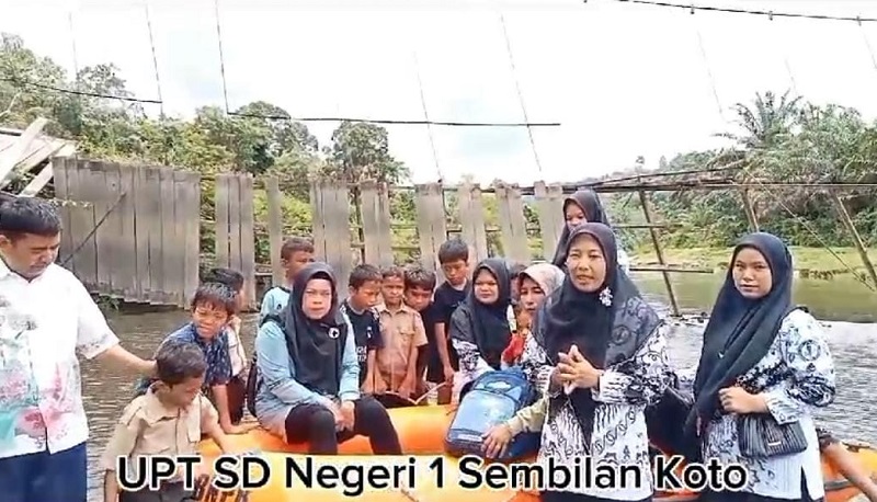 “Jembatan yang telah berusia sekitar 25 tahun ini merupakan satu-satunya akses darat menuju sekolah yang terletak di seberang sungai,” ungkap Seprina Eliza, guru SDN 1 Sembilan Koto, dalam unggahan video yang viral, Rabu (18/9/2024).