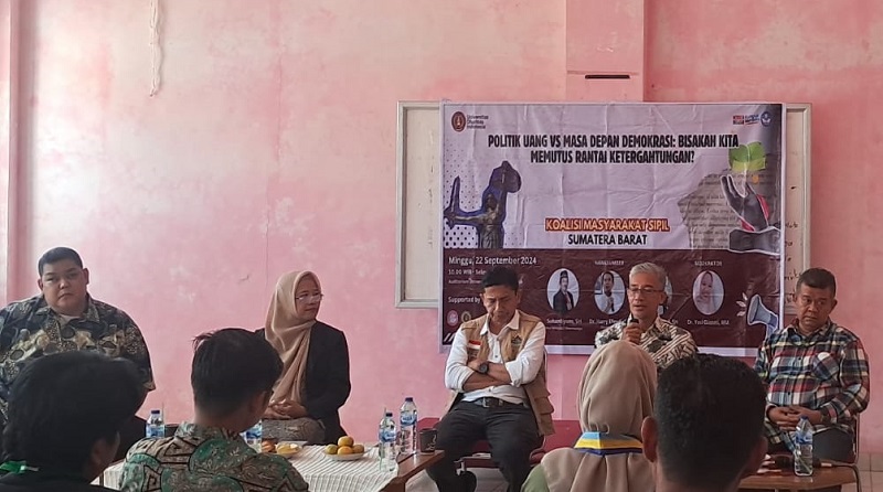Para narasumber yang hadir, yakni Harry Efendi dari Koalisi Masyarakat Sipil Sumatera Barat (KMSS), Samaratul Fuad dari Komite Independen Pemantau Pemilu (KIPP), dan Maradis dari Bawaslu Kabupaten Dharmasraya, secara kompak menyoroti maraknya praktik politik uang yang mengancam kualitas demokrasi di Indonesia, khususnya di daerah.