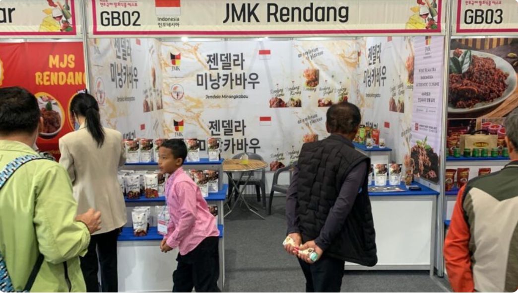 Di antara peserta dari Sumbar, hadir Suryani Sabri, pelaku UMKM produsen rendang dengan merek Jendela Minangkabau (JMK), yang turut meramaikan stand Sumbar di IFFE. Suryani menyampaikan rasa syukur bisa membawa rendang Minangkabau ke panggung internasional.