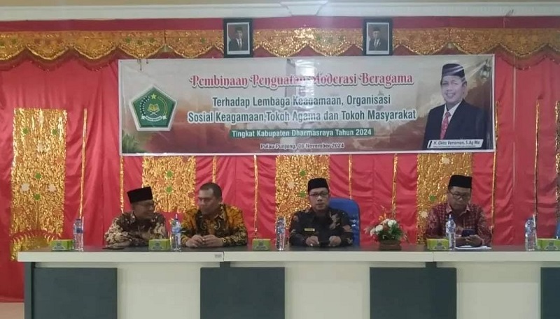 Kepala Kantor Kemenag Dharmasraya, Okto Verisman, menegaskan pentingnya moderasi beragama sebagai cara pandang yang menjunjung tinggi nilai-nilai kemanusiaan dan kemaslahatan umum.