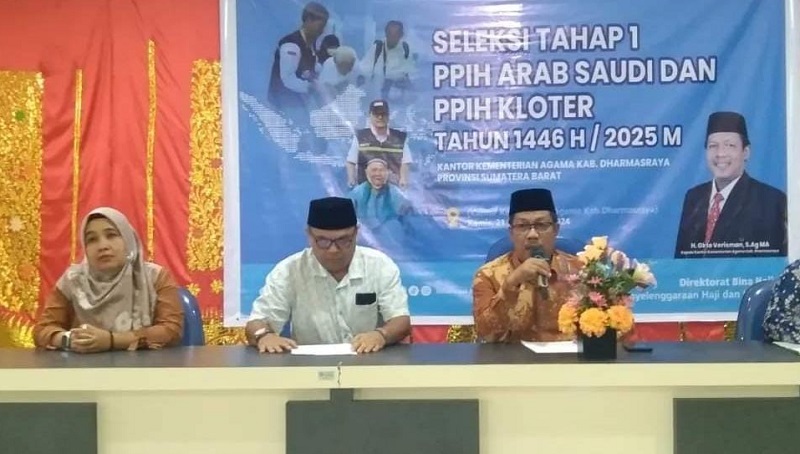 Dharmasraya, Scientia.id – Kepala Kantor Kemenag Dharmasraya, Okto Verisman, didampingi oleh Kasi PHU, Hamid Arwani, membuka secara resmi Seleksi Tahap I Petugas Penyelenggara Haji Indonesia (PPIH) 1446H/2025 M di Lingkungan Kemenag Dharmasraya, yang berlangsung di Gedung Sekber KUB Kantor Kemenag, Kamis (21/11/2024).