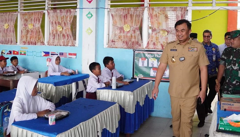 “Giat hari ini merupakan uji coba makan bergizi gratis bagi siswa, yang merupakan program dari Pak Presiden Prabowo dan Wapres Gibran Rakabuming Raka sebagaimana dijanjikan pada Pilpres kemaren,” ujar Sutan Riska didampingi Kadis Pendidikan, Bobby P Riza.