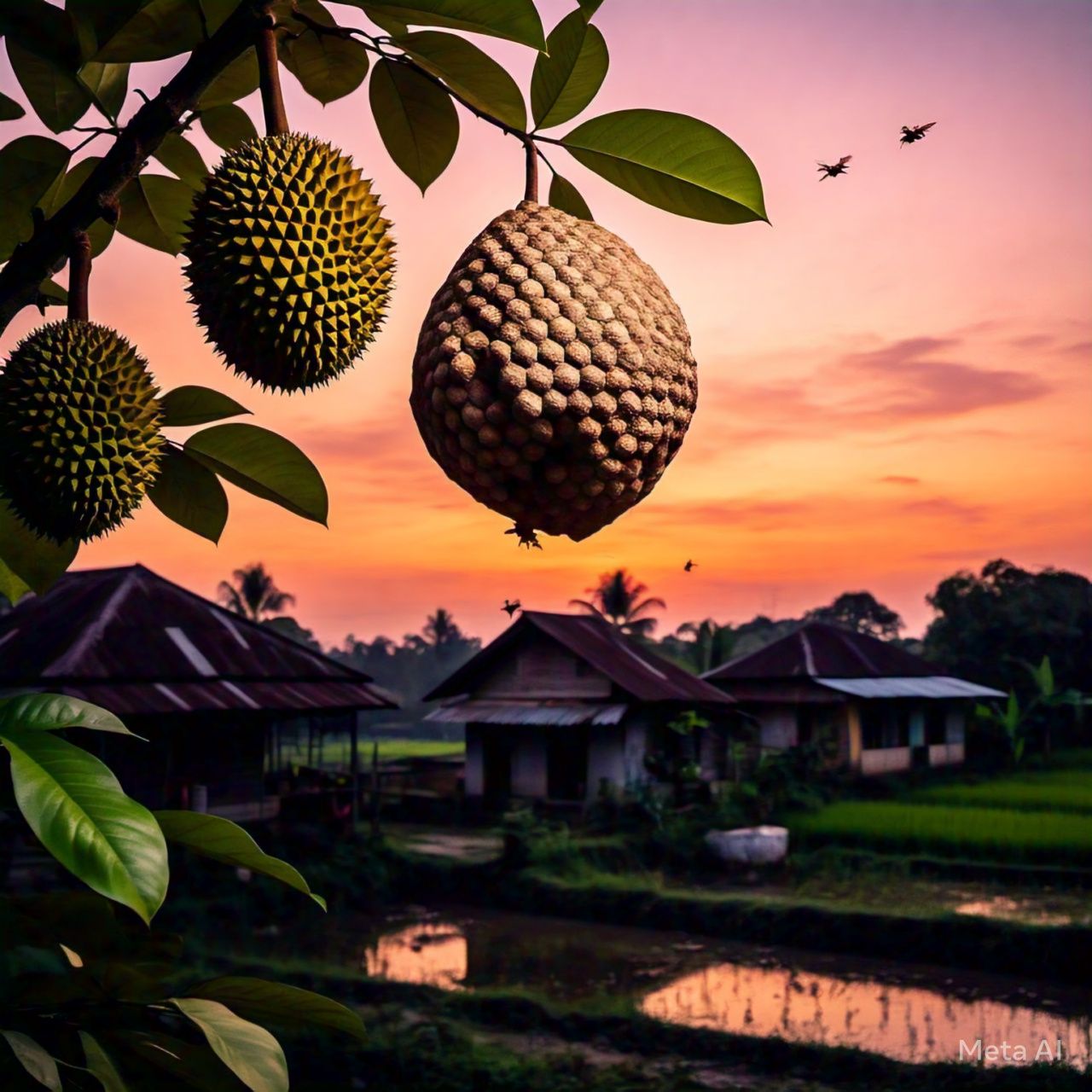 Bidin menjuruskan pandangannya ke arah buah durian terakhir itu. Sementara Mantri Suman dan Jamidi masih saling tarik ulur perihal pajat atau tidak. Tepat pada detik kesekian sorot mata Bidin tertuju pada satu titik hitam besar yang ada pada kulit buah durian. Beberapa ekor serangga sebesar kelingking bergerak-gerak penuh aktifitas disana.