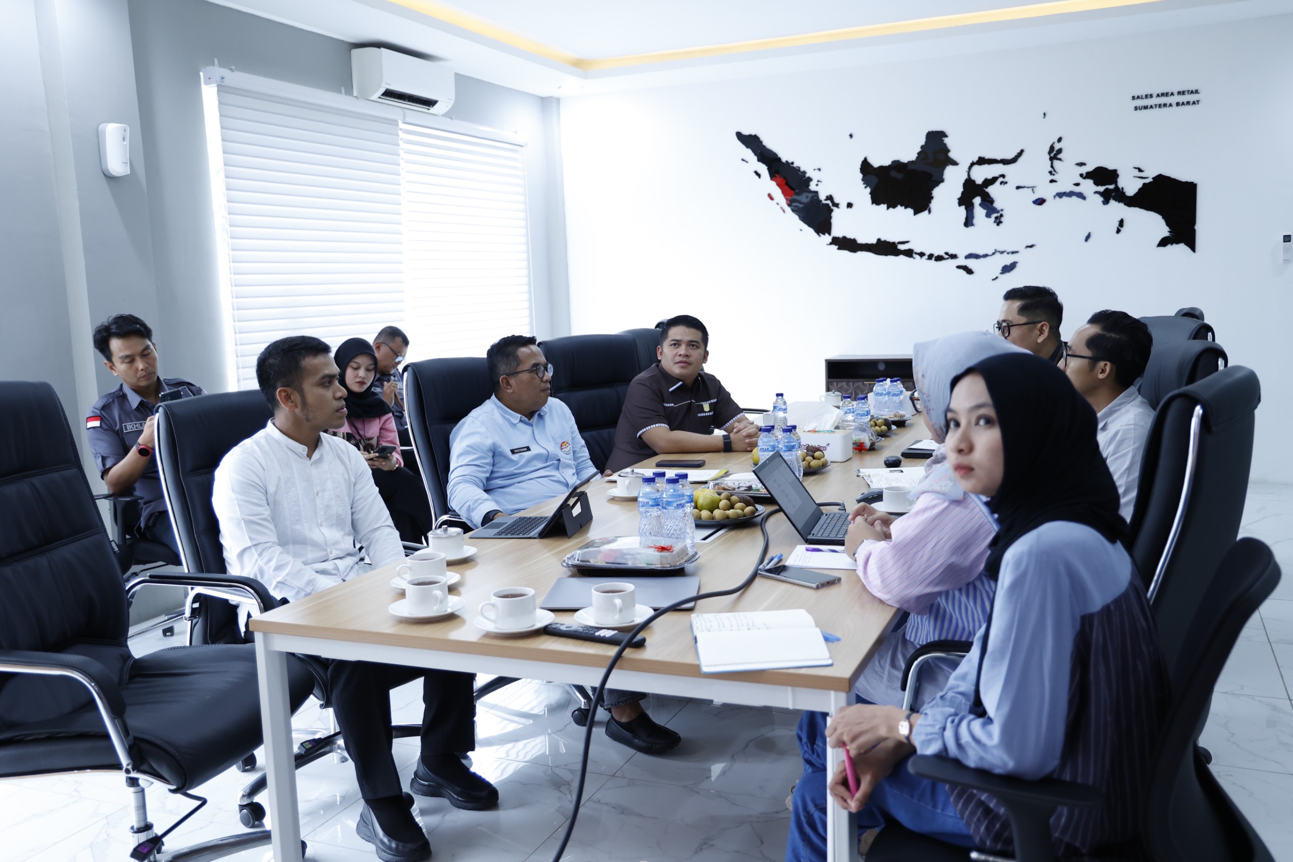 Sales Area Manager Pertamina Patra Niaga Sumbar, Narotama Aulia Fazri rombongan sekaligus mendiskusikan usulan pembatasan penggunaan BBM subsidi hanya untuk kendaraan dengan nomor polisi Sumatera Barat (plat BA).