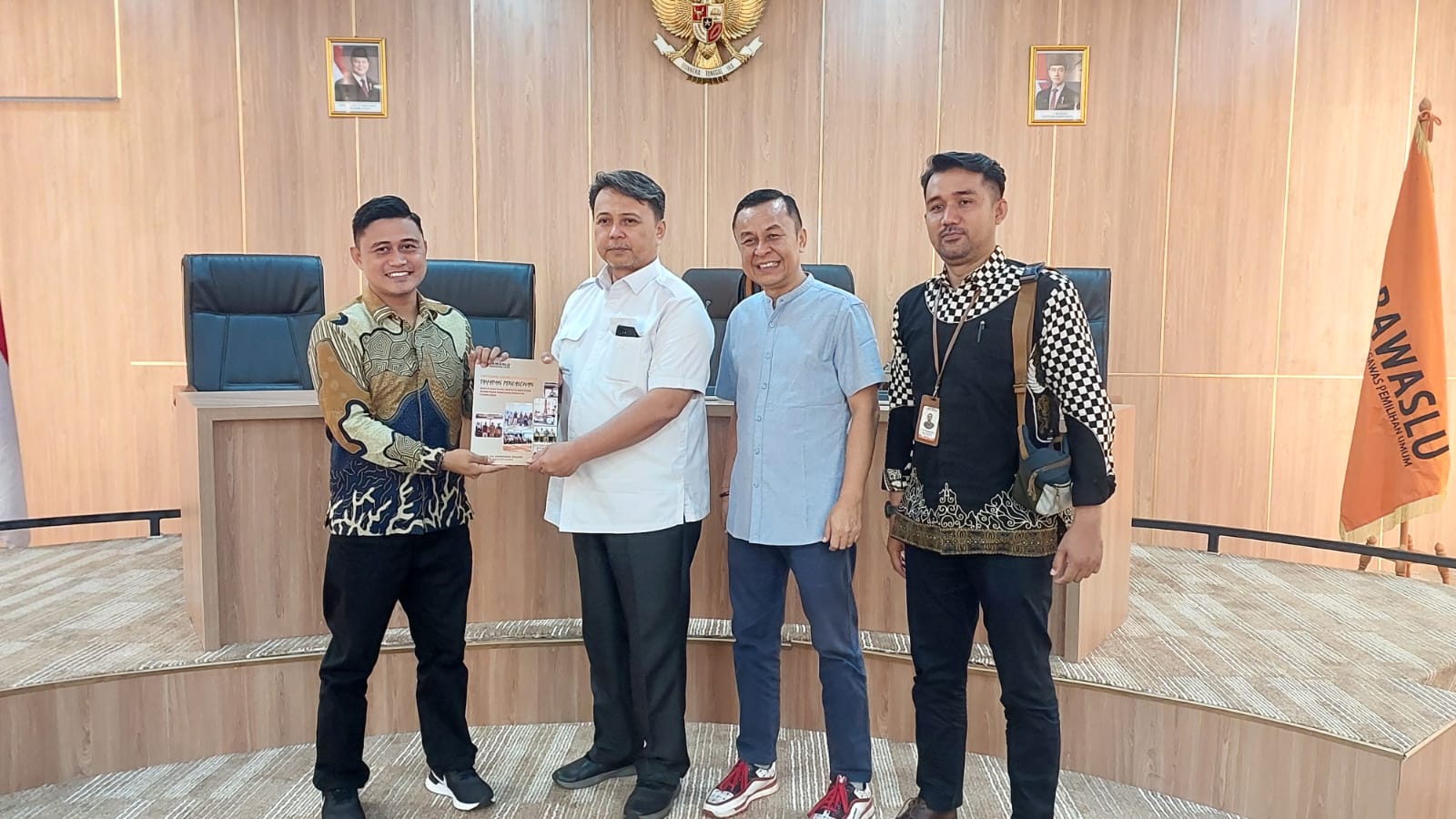 Laporan diserahkan oleh Anggota Bawaslu Agam Rendi Oktafianda selaku Kordiv Hukum dan Penyelesaian Sengketa  Bawaslu Kabupaten Agam beserta staf Divisi kepada Kepala Biro Fasilitasi Penyelesaian Sengketa Bawaslu RI, Harimurti Wicaksono.