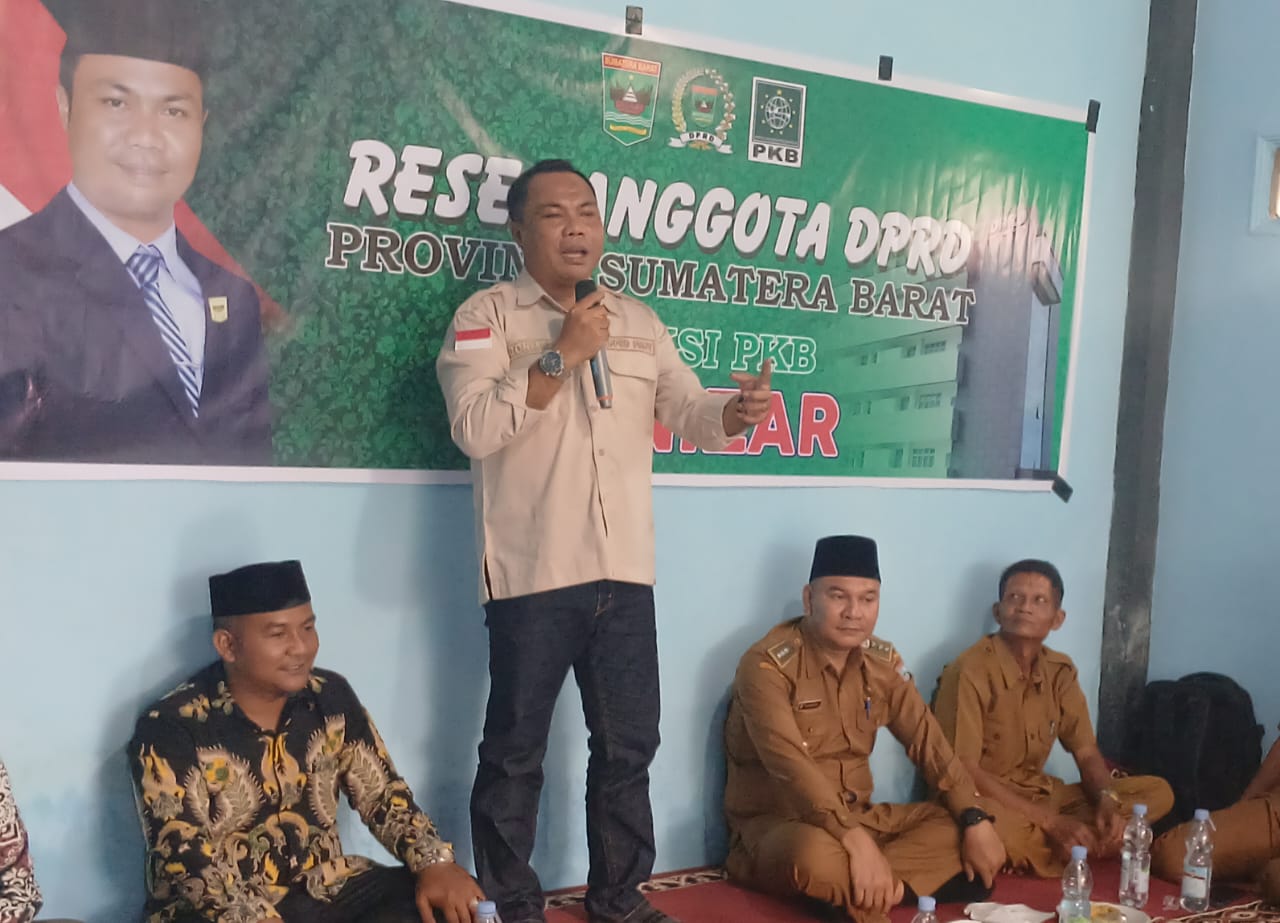 Pasaman Barat, SCIENTIA – Bendahara Partai Kebangkitan Bangsa (PKB) Provinsi Sumatera Barat, Donizar, melakukan reses di Jorong Bancah Kariang, Wonosari, Pasaman Barat pada Senin, (17/02).