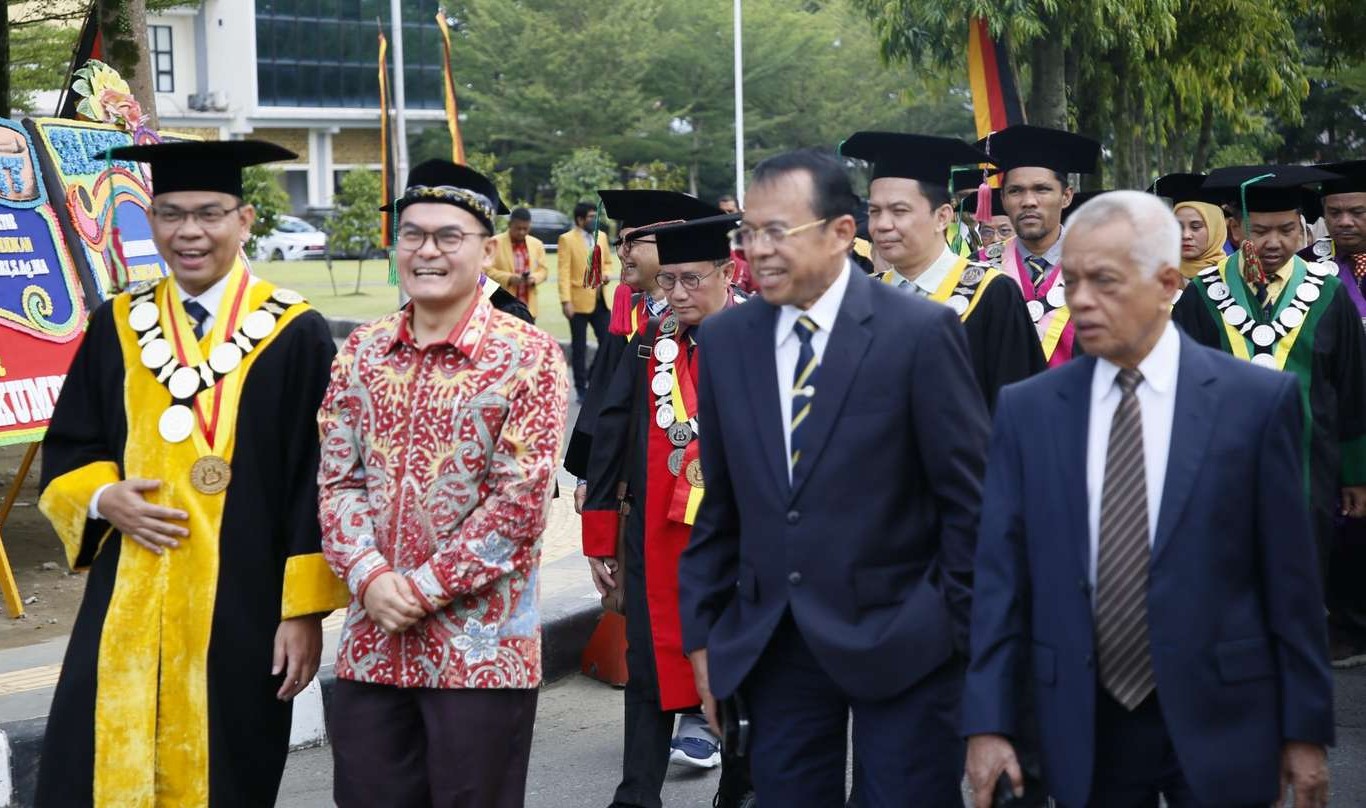 “Perkembangan yang telah dicapai UNP ini luar biasa dan patut kita rawat. Pada wisuda tahun 2021, saya hadir dan menuliskannya di media nasional, melihat bagaimana UNP mengalami transformasi. Dengan status PTN-BH, peluang kerja sama serta optimalisasi aset di berbagai daerah menjadi lebih luas,” ungkap Tatang di hadapan 852 wisudawan.