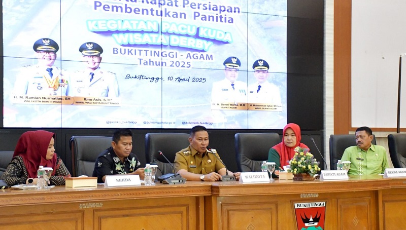 “Rapat ini menegaskan sinergi antara Pemko Bukittinggi dan Pemkab Agam dalam mendukung kegiatan event pacuan kuda, baik dari segi koordinasi, fasilitasi, maupun anggaran, serta keterlibatan sponsor dan donatur,” katanya, Kamis (10/4/2025), di Aula Balai Kota Bukittinggi