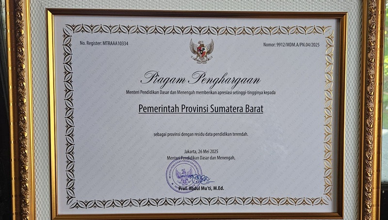Sementara itu, Kepala Dinas Pendidikan Provinsi Sumbar, Barlius menyebut penghargaan ini merupakan buah dari kerja keras, konsistensi, serta pelatihan berkelanjutan yang dilakukan bersama seluruh pemangku kepentingan di sektor pendidikan.