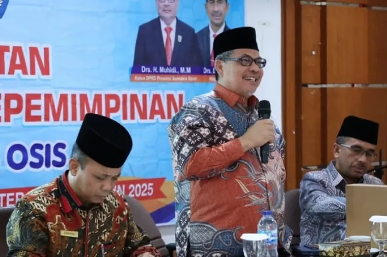 scientia.id – Ketua DPRD Provinsi Sumatera Barat, Drs. H. Muhidi menghadiri sekaligus menjadi narasumber dan motivator dalam acara pembukaan Bimbingan Teknis (Bimtek) Penguatan Latihan Dasar Kepemimpinan (LDK) bagi pengurus OSIS SMK se-Sumatera Barat Tahun 2025, Sabtu (12/7) di aula SMKN 6 Padang.