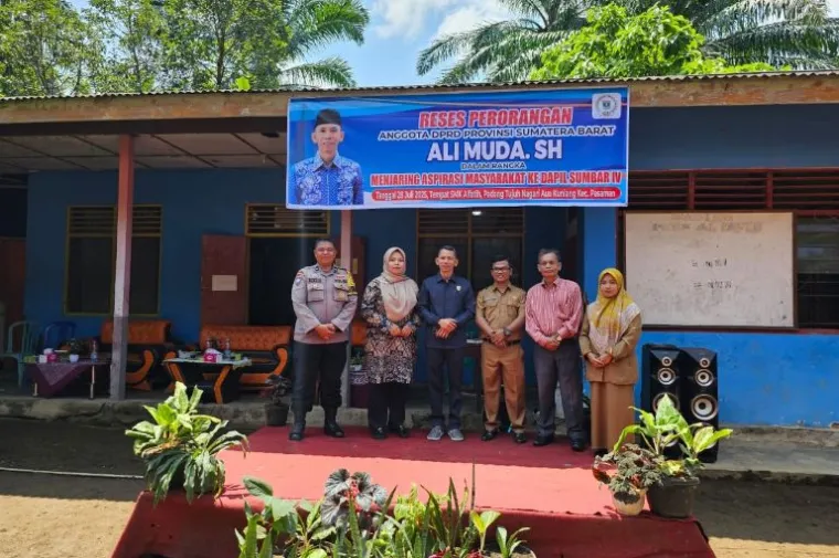 scientia.id – Anggota DPRD Provinsi Sumbar, Ali Muda menggelar reses di SMK Al Fatih Komplek Pertanian Padang Tujuh, Nagari Aua Kuniang, Kecamatan Pasaman, Kabupaten Pasaman Barat, Senin (28/7).