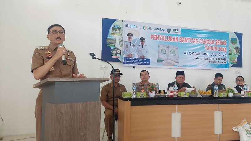 Pesisir Selatan, Scientia.id – Pemerintah Kabupaten (Pemkab) Pesisir Selatan (Pessel) salurkan 651 ton beras untuk 37.300 Keluarga Penerima Manfaat (KPM) melalui program Cadangan Beras Pemerintah (CBP). Penyaluran berlangsung serentak di 15 kecamatan, dengan peluncuran resmi di Aula Kantor Camat Batang Kapas, Senin (28/7/2025).