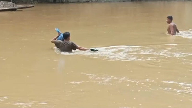 Pasaman, Scientia.id – Akses terputus tak menyurutkan semangat penghulu untuk berenang demi menikahkan pasangan di Jorong Batang Kundur, Kecamatan Dua Koto, Kabupaten Pasaman, Sumatra Barat, Sabtu (2/8/2025).