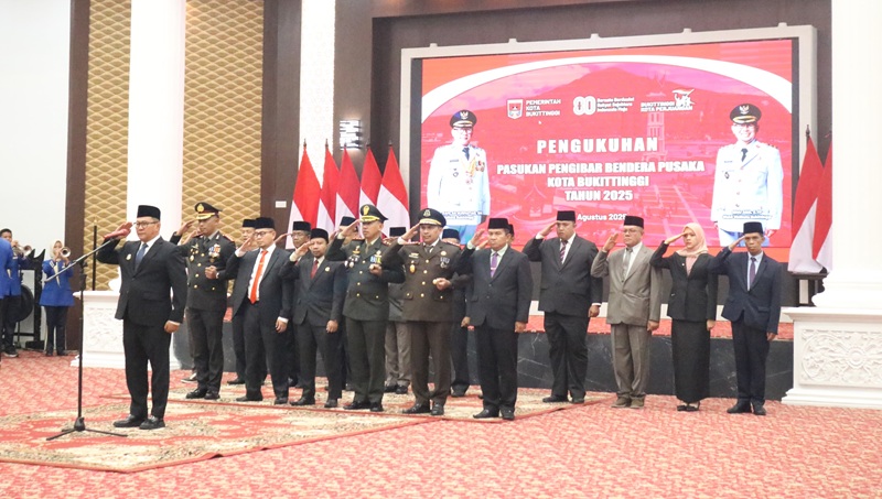 Upacara pengukuhan berlangsung khidmat. Seluruh anggota Paskibraka mengucapkan ikrar Putra Indonesia dan melakukan prosesi memegang Sang Saka Merah Putih, diiringi lagu “Padamu Negeri”. Acara ini turut dihadiri oleh Forkopimda, serta sejumlah Kepala SKPD dan OPD Kota Bukittinggi. (*)