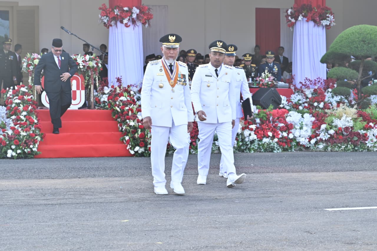 “Pelan-pelan, tahap demi tahap, kesejahteraan bisa kita raih. Harapannya, Indonesia benar-benar bisa sampai pada impian besarnya tahun 2045 sebagai Indonesia Emas,” ujar Mahyeldi usai upacara, didampingi Wakil Gubernur Sumbar, Vasko Ruseimy.
