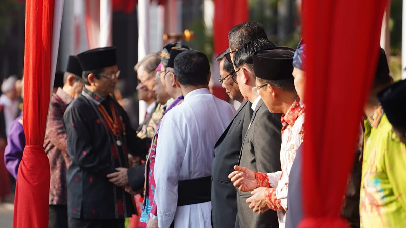 Dalam momen itu, Menteri Agama Nasaruddin Umar bersama Wakil Menteri Agama Romo Muhammad Syafi’i menyematkan tanda kehormatan kepada sejumlah aparatur sipil negara.