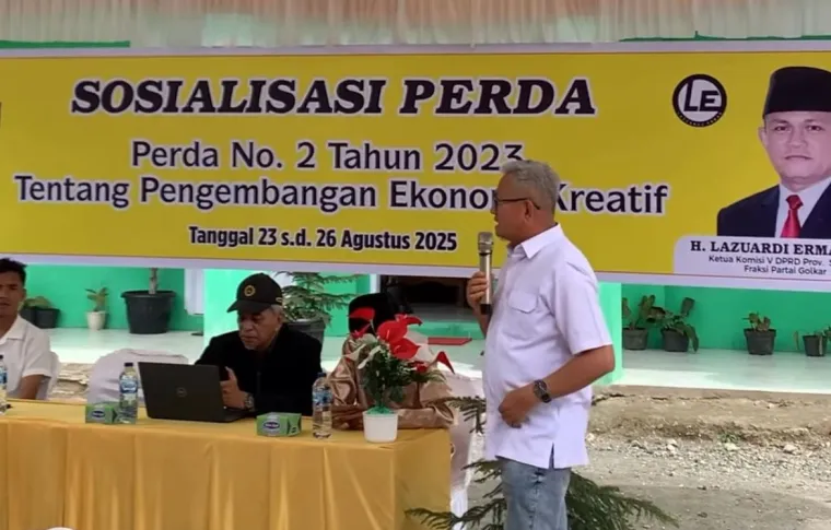 scientia.id– Anggota DPRD Sumbar, Lazuardi Erman melaksanakan Sosialisasi Peraturan Daerah (Sosperda) di Matur, Kabupaten Agam, Minggu (24/8/2025). Kegiatan ini mengangkat Perda No. 2 Tahun 2023 tentang pengembangan ekonomi kreatif.