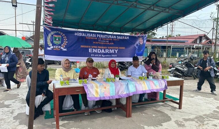 scientia.id- Anggota Komisi V DPRD Sumbar, Endarmy, mengadakan sosialisasi Peraturan Daerah (Perda) Nomor 12 Tahun 2017 tentang Kepemudaan, di Nagari Kayu Tanam, Padang Pariaman, Senin (25/8).