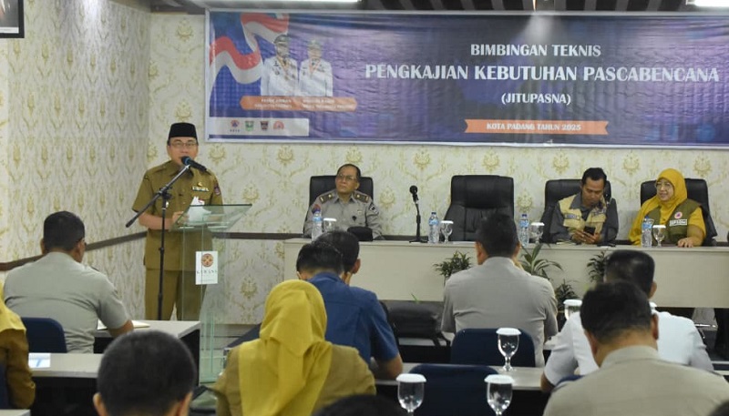 Wakil Wali Kota Padang, Maigus Nasir, mengingatkan pentingnya perencanaan matang dalam mitigasi. Hal itu disampaikannya ketika membuka Bimbingan Teknis (Bimtek) Pengkajian Kebutuhan Pascabencana (Jitupasna) di Kawana Hotel, Selasa (2/9/2025).
