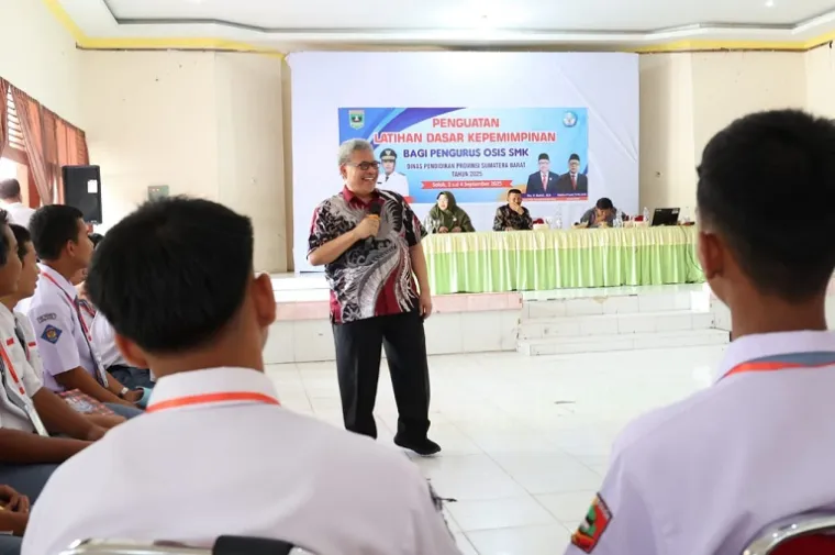 Solok, Scientia.id – Ketua DPRD Sumbar, Muhidi memotivasi para pengurus OSIS SMK se-Kota dan Kabupaten Solok dalam Latihan Dasar Kepemimpinan (LDK) di SMK Negeri 1 Kota Solok, Rabu (3/9).