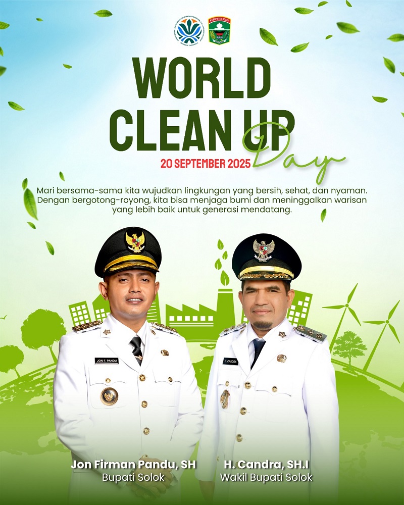 “World Clean-Up Day adalah aksi global yang telah diakui PBB. Sejak 2018, Indonesia menjadi negara dengan relawan terbanyak di dunia, dan kita harus menjaga prestasi ini. Kegiatan ini adalah simbol kepedulian, gotong royong, sekaligus ikhtiar menuju Kabupaten Solok bersih dan berdaya saing. Mari kita ubah paradigma lama pengelolaan sampah—dari sekadar kumpul-angkut-buang menjadi kumpul-angkut-pilah-buang. Mulailah memilah sampah dari rumah, karena sampah yang dipilah bisa bernilai ekonomi sekaligus mengurangi beban TPA,” jelasnya.