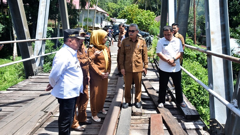 Salah satu titik yang dikunjungi adalah Jembatan Kampuang Caniago yang mengalami kerusakan. Bupati memastikan akan segera dikoordinasikan langkah perbaikannya agar aktivitas warga tidak terganggu.