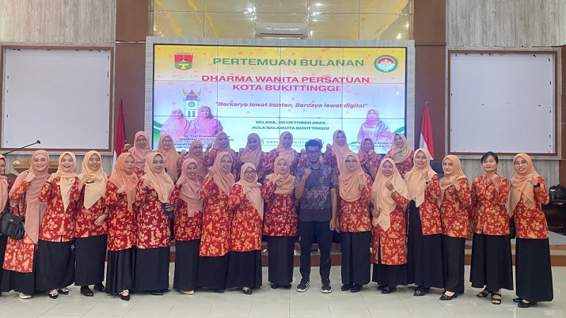 Bukittinggi, Scientia.id – Dharma Wanita Persatuan (DWP) Kota Bukittinggi menggelar pertemuan bulanan di Aula Balai Kota Bukittinggi, Selasa (28/10/2025).