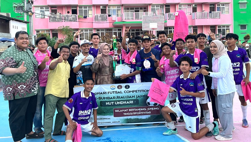 Dharmasraya, Scientia.id — Tim futsal SMAN 2 Pulau Punjung berhasil menorehkan prestasi gemilang setelah menaklukkan SMAN 1 Sungai Rumbai dalam laga final Undhari Futsal Competition 2025 tingkat SLTA se-Sumatera Barat, Riau, dan Jambi, Sabtu (8/11/2025).