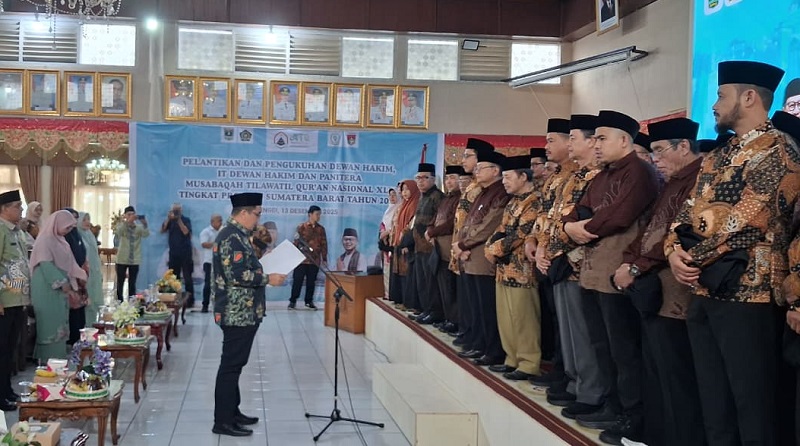 Bukittinggi, Scientia.id – Gubernur Sumatra Barat melalui Asisten Pemerintahan dan Kesejahteraan Rakyat (Aspem-Kesra) resmi melantik dan kukuhkan Dewan Hakim, Tim Teknologi Informasi (IT) Hakim, serta Panitera Musabaqah Tilawatil Qur’an (MTQ) Nasional ke-XLI Tingkat Provinsi Sumatra Barat. Proses pelantikan dewan hakim berlangsung di Istana Bung Hatta, Sabtu, 13 Desember 2025.