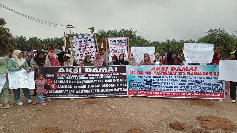 Dharmasraya, Scientia.id – Batas waktu satu minggu yang disepakati untuk realisasi hak plasma 20% bagi masyarakat adat Nagari Alahan Nan Tigo dan Lubuk Besar, Kecamatan Asam Jujuhan, resmi jatuh pada hari ini, Selasa (3/2/2026). Namun, hingga saat ini belum ada titik temu antara keinginan masyarakat dengan penawaran PT Tidar Kerinci Agung (TKA).