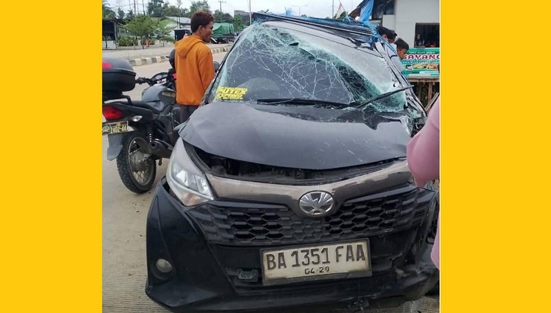 Satu unit mobil travel Toyota Calya dengan nomor polisi BA 1351 FAA dilaporkan menabrak sebuah minibus jenis Suzuki Carry bernomor polisi BH 1454 BL yang sedang terparkir di badan jalan.
