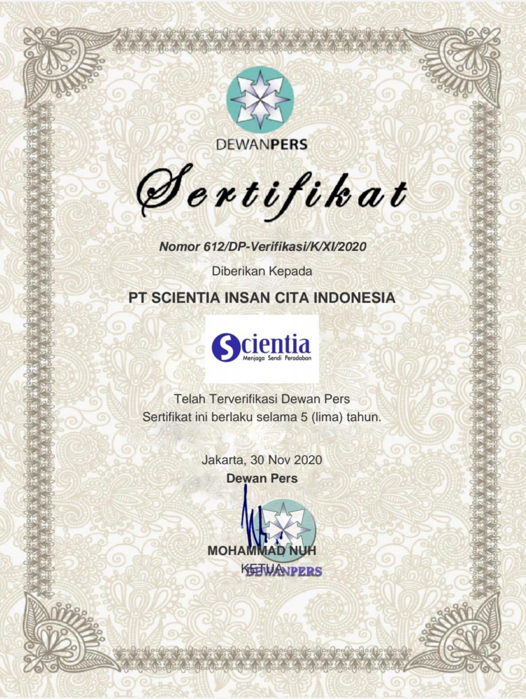 Media siber Scientia.id diterbitkan oleh perusahaan pers dengan nama badan hukum